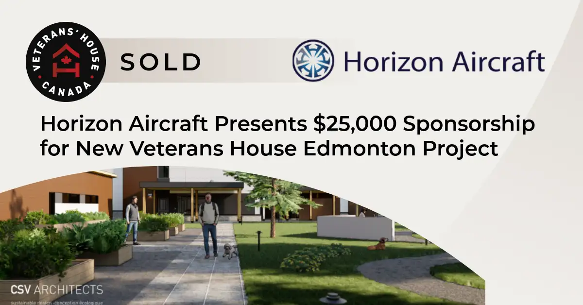 Veterans’ House Canada is excited to announce a $25,000 sponsorship from Horizon Aircraft. The funds will directly support the build of VHC’s second veterans’ house near Edmonton, Alberta, with doors expected to open fall of 2026.